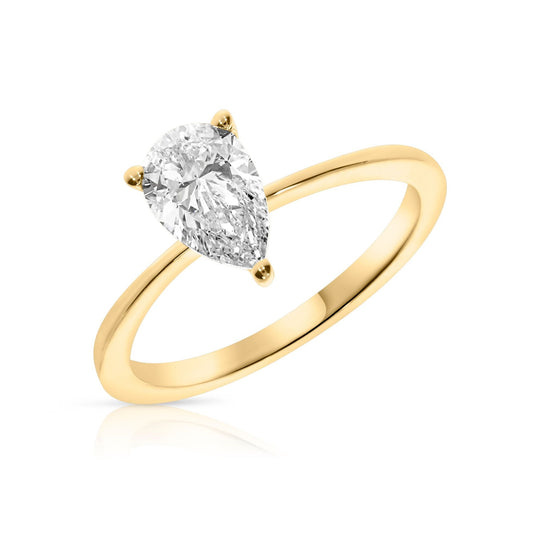 Gold Solitaire Ring with Pear Diamond – Tear of the Moon | Solitaire Rings