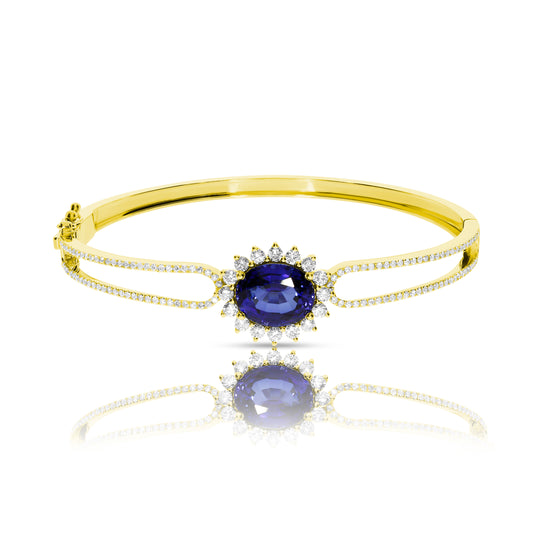 Silver Bangle Bracelet with Oval-cut Sapphire – Celestial Harmony | Diffusion