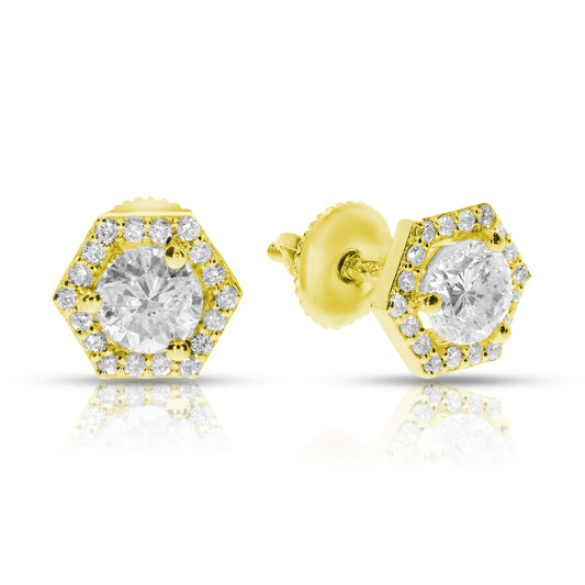 Gold Stud Earrings with Round Diamonds – Hexagonal Harmony | Stud Earrings