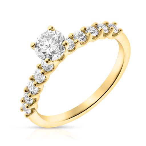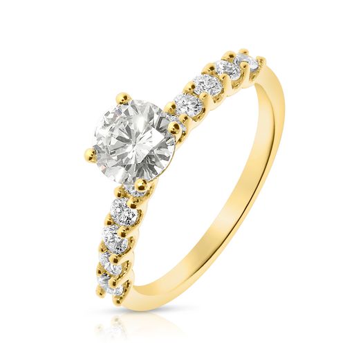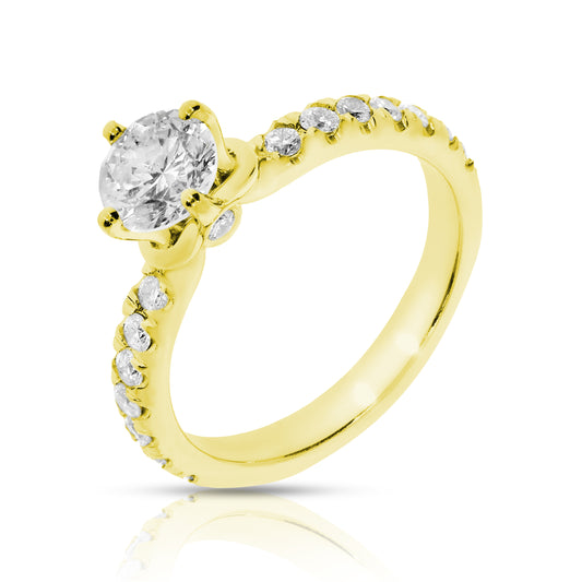Gold Sidestone Ring with Round Diamond – Symphony of Stars | Sidestone Rings