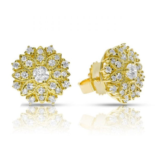 Gold Stud Earrings with Round Diamonds – Celestial Blossom | Stud Earrings