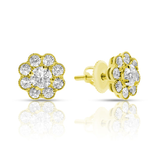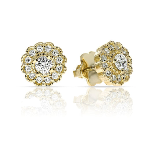 Stud Earrings in Gold with Round Diamonds – Celestial Blossoms