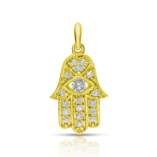 Gold Hamsa Pendant with Round Diamond – Guardian's Light | Hamsa Pendants