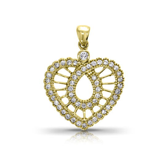 Gold Heart Pendant with Round Diamonds – Eternal Embrace