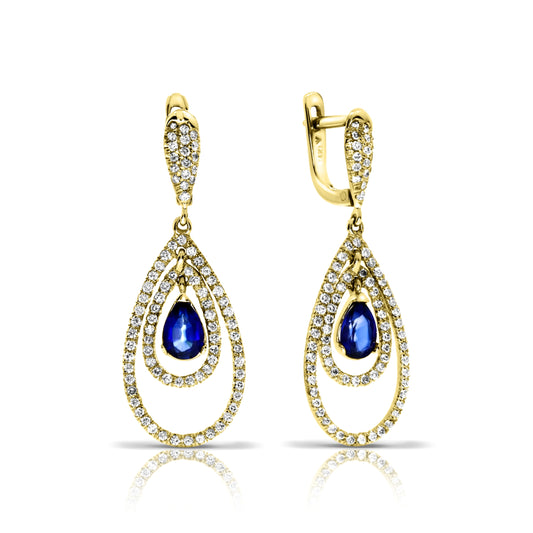 Gold Chandelier Earrings with Pear Sapphire – Midnight Cascade | Diffusion