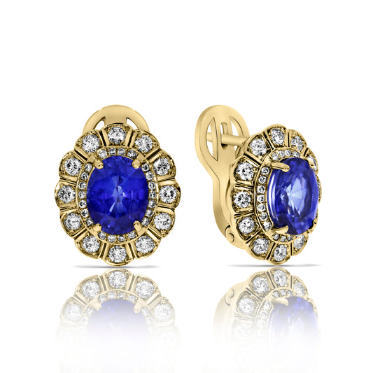 Gold Earrings with Oval Sapphire and Diamonds – Celestial Petals | Diffusion